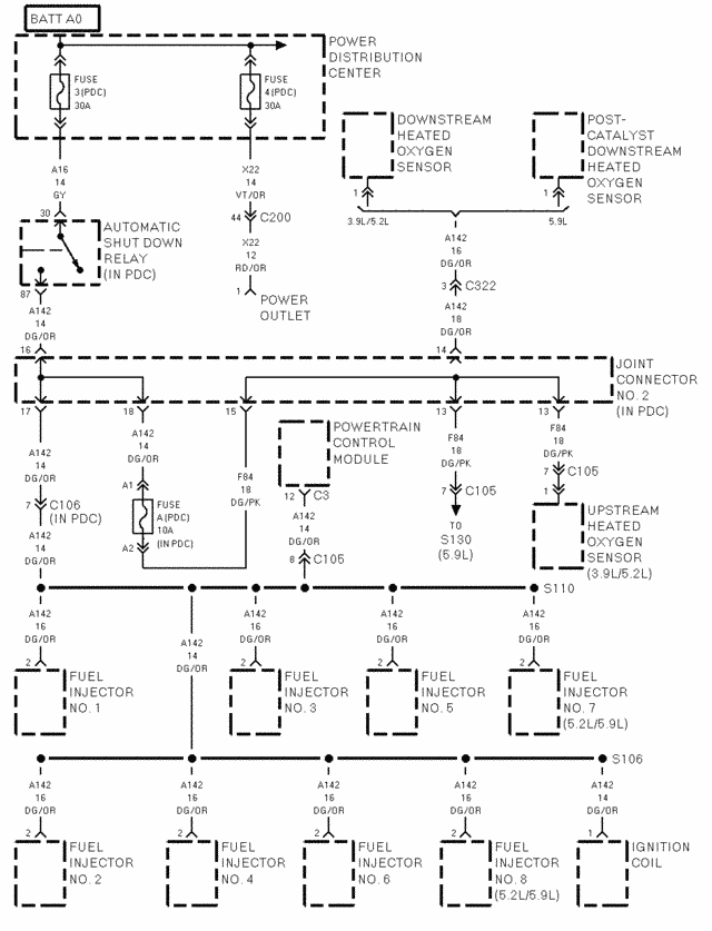 POWER DISTRIBUTION 13 3.9L,5.2L,5.9L